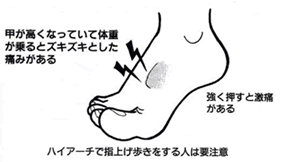 甲の骨は知らないうちに高くなっているので、歩く度にズキズキとした痛みあるいは、甲に触れるだけでも痛みを感じることがあります。