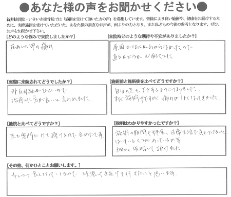 足の甲の痛みの施術を受けて頂いた方の感想を頂きました。